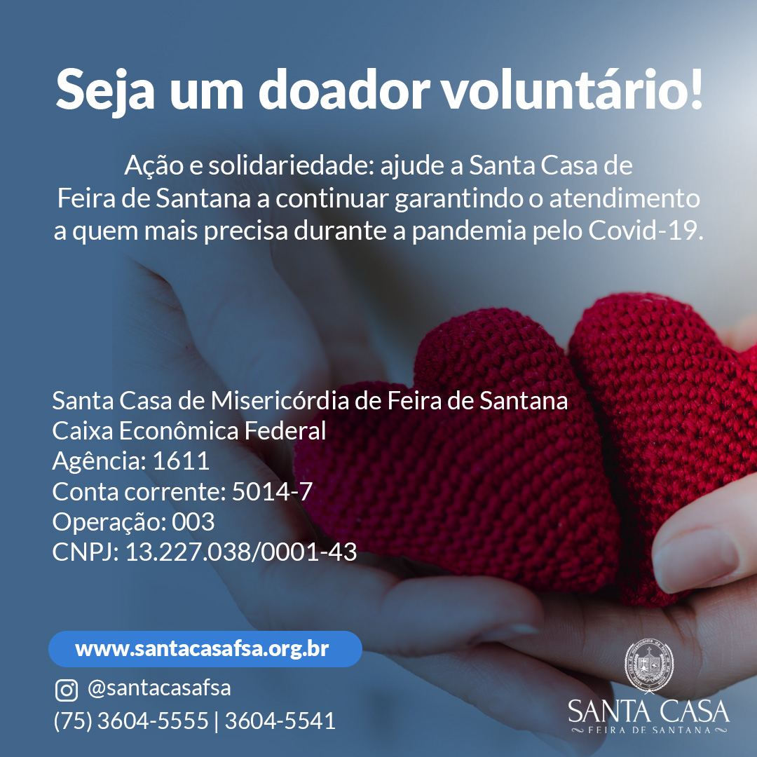 Ação e solidariedade: ajude a Santa Casa de Feira de Santana a continuar garantindo o atendimento a quem mais precisa durante a pandemia pelo Covid-19.